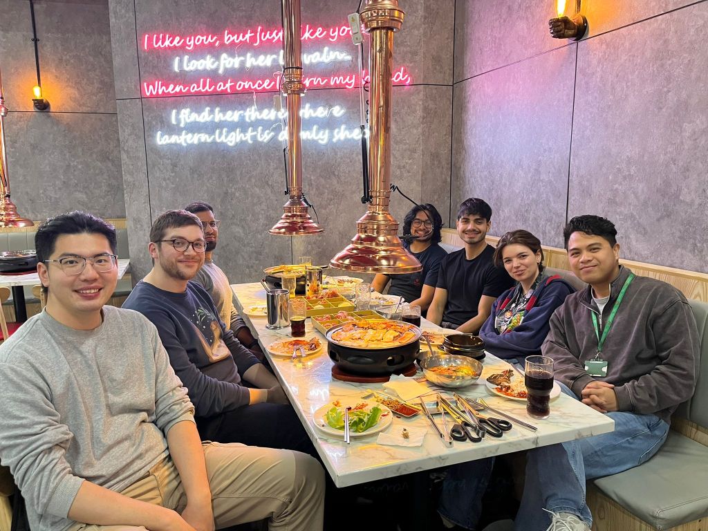 Group outing to Rudy’s for festive drinks and pizza. Merry Christmas! L to R, Josh Tibbetts, Amaziah Alipio, Arsalan Latif, Emre Turan, Moosa Wasim, Gaia de Domenico, Chiara Arno, Leila Abdollahi.