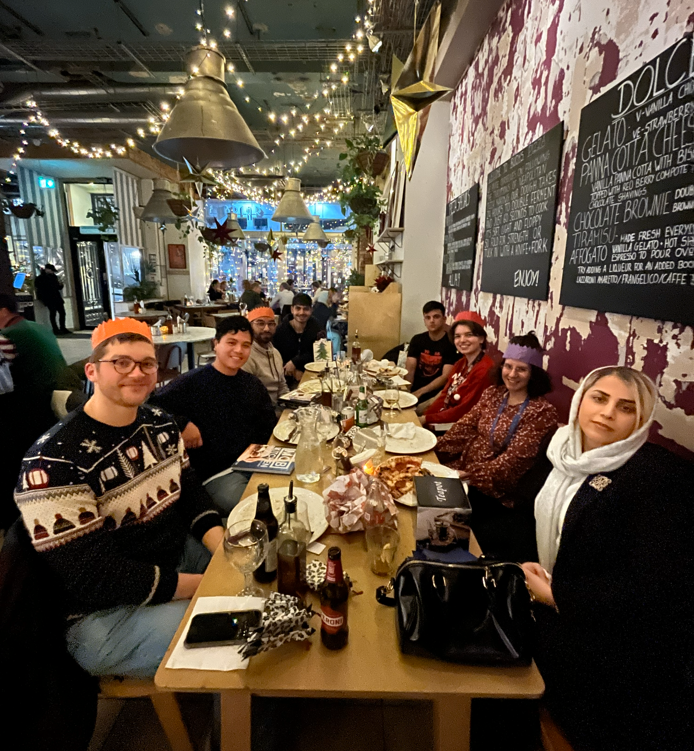 Christmas meal 2021 🎄🎄🎄. L to R, Alasdair Rigby, Chiara Arno, Amaziah Alipio, Natalia Reis, Ana Cubillo.